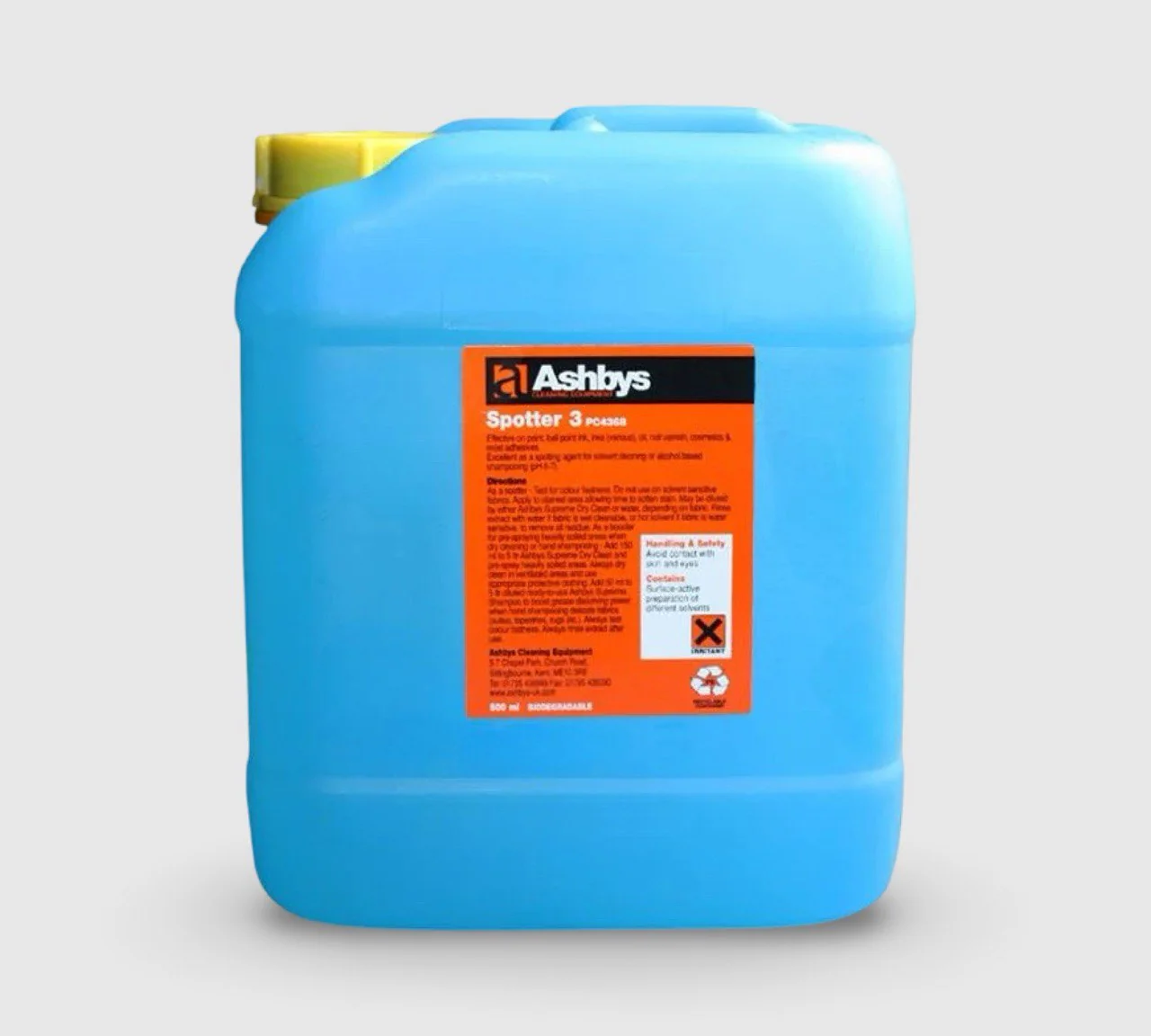 With our extensive experience in the field, we've found that if Ashbys Spotter 3 cannot remove the mark, it is highly unlikely that any other product will. This tried and trusted formula has gained the unwavering trust of carpet cleaning professionals, cementing its position as the preferred stain remover for all solvent-based stains. Be sure to keep Ashbys Spotter 3 onboard your van!