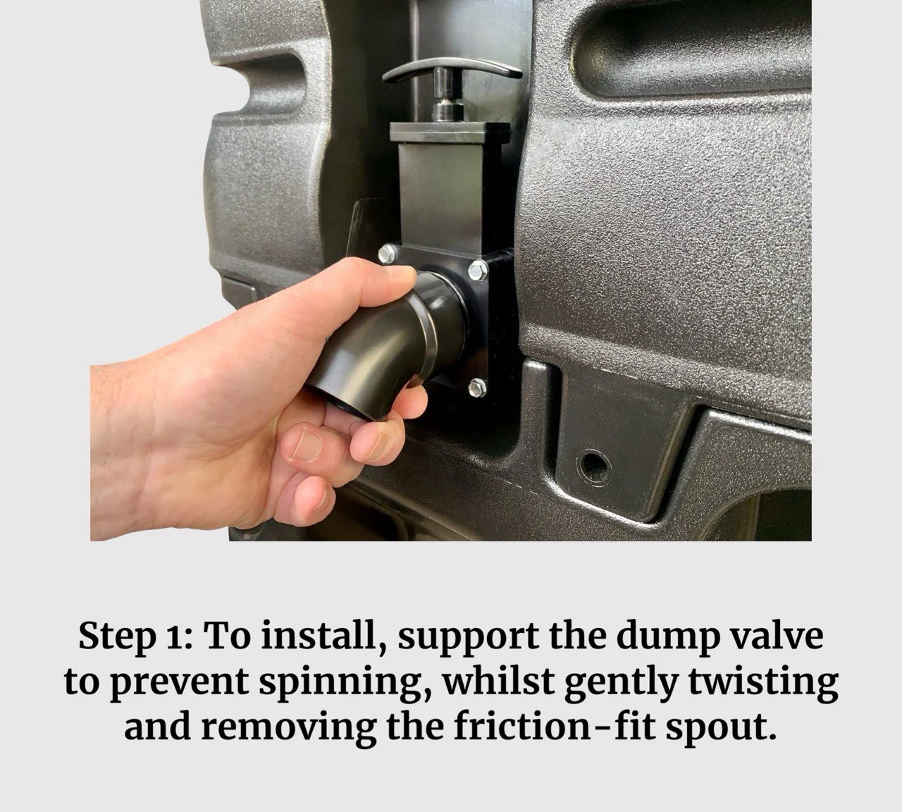 To operate, simply remove the friction-fit angled spout from your machine's dump valve and connect the system directly. Make sure the open end of the 25 ft / 7.6 m Large Bore Drainage Hose is positioned lower than the height of the dump valve, as it operates using gravity. Place the open end into a suitable wastewater outlet and open the dump valve to allow for free drainage.