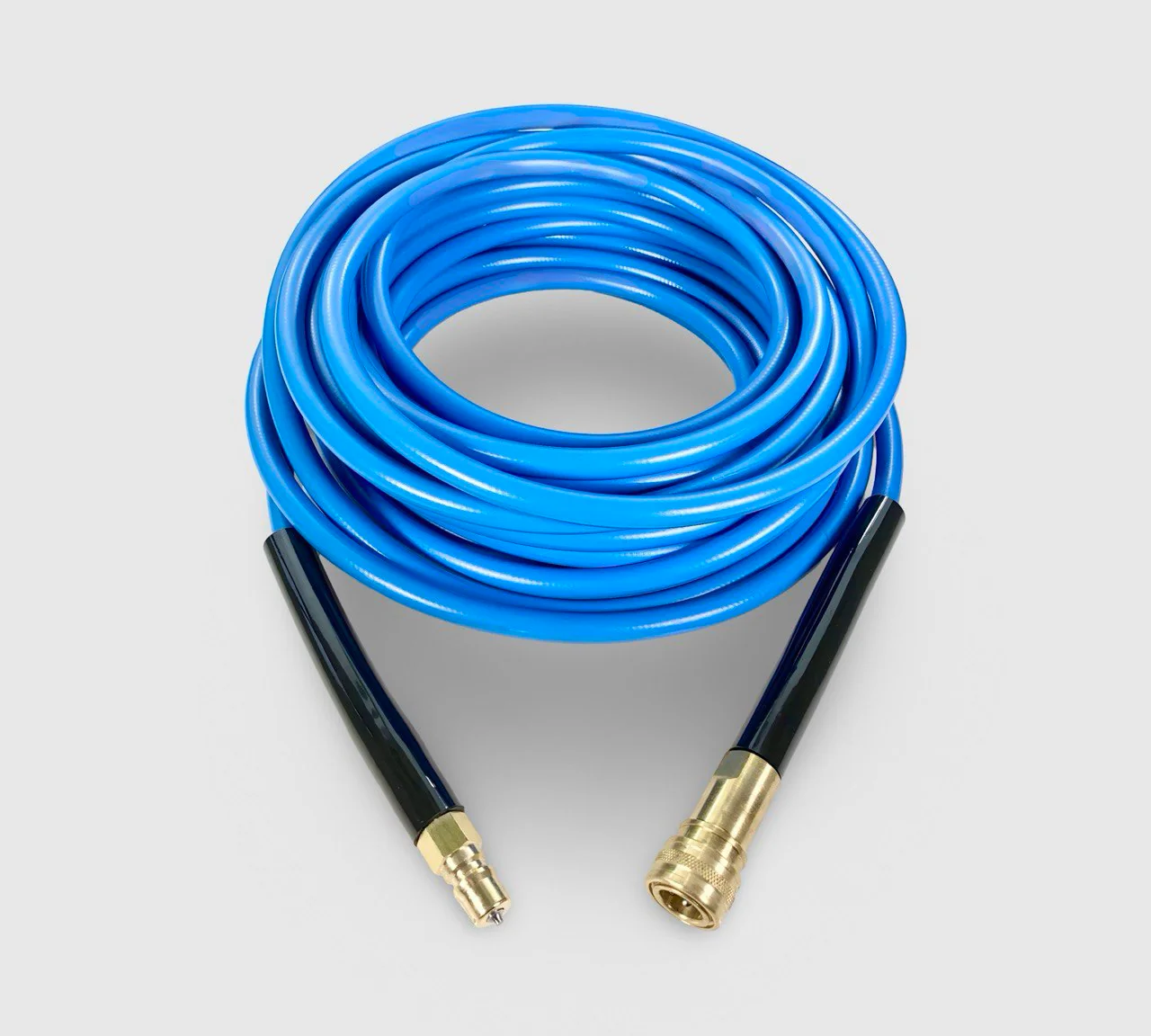 Our wire-reinforced, high-pressure solution hose is specifically designed for professional carpet cleaning machines. With a non-marking exterior, it ensures your customers' furnishings and carpets remain pristine. Rated for pump pressures up to 3000 psi, this premium quality hose features bend restrictors at each end to protect against wear and extend its lifespan.