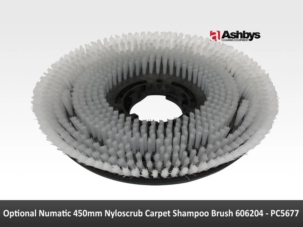 GeniuneĀ Numatic 450mm Nyloscrub Carpet Shampoo Brush 606204. This brush is designed for applying rotary shampoo / bonnet buffing products to carpeted areas. These product include (but are not limited to), the following -